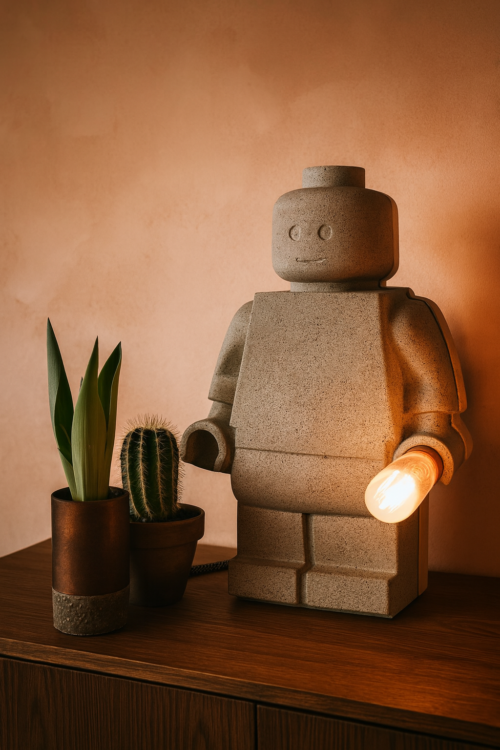Experience artistry in every glow, as wood and concrete transforms nostalgia in to a visual representation of your favorite bricks.